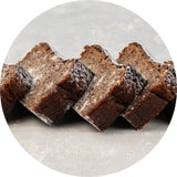 Ypač minkšta, burnoje tirpstanti bananų duona, padengta plonu cukraus pudros sluoksniu.