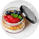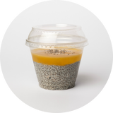 Kokosų pienas, saldintas sutirštintas pienas, Chia sėklos, egzotinių vaisių džemas.