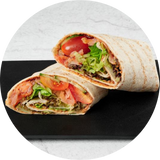 Šildoma tortilija su lašiša.