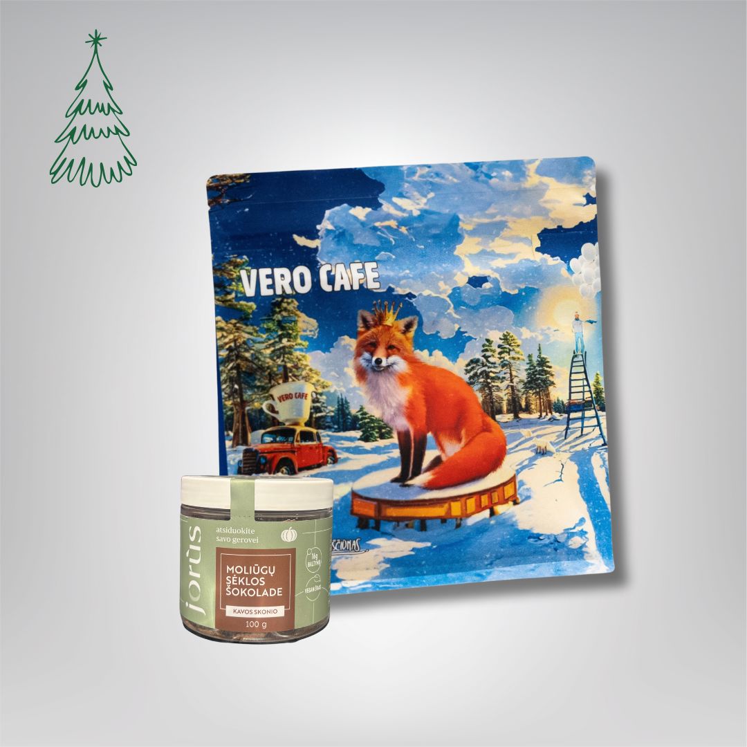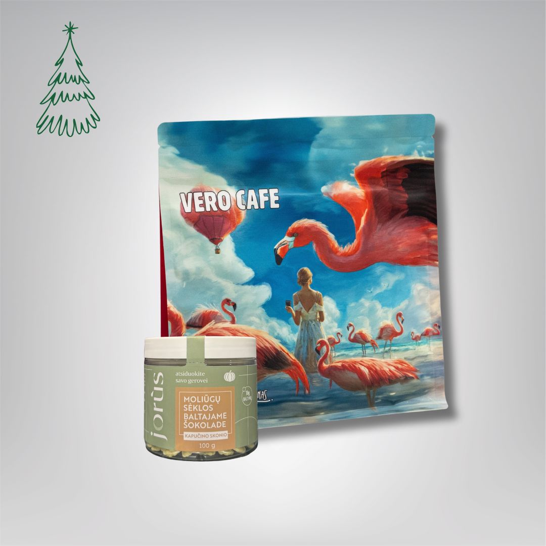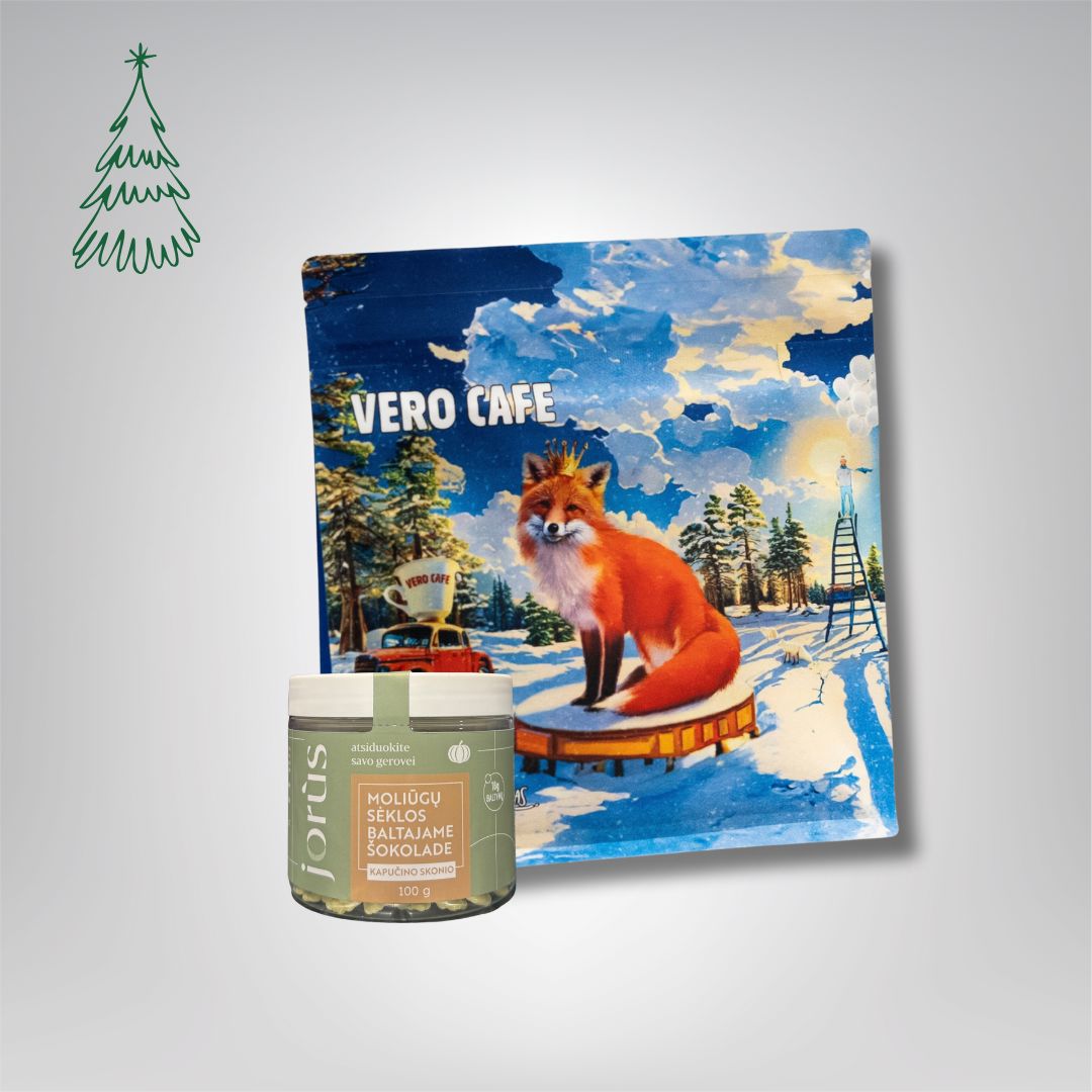 Pasirinkite šį dovanų rinkinį ir suteikite artimiesiems nepakartojamą akimirką – mėgaujantis mėgstamo skonio kava ir lietuviško prekės ženklo moliūgų sėklomis šokolade.